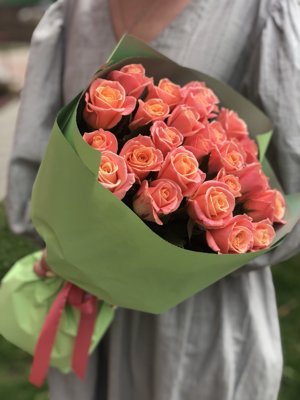 Розы "Адмирал" известны своей стойкостью и долговечностью, что делает этот букет идеальным подарком для особых случаев или просто для того, чтобы порадовать близкого человека. Композиция оформлена с любовью и заботой, подчеркивая красоту каждого цветка.