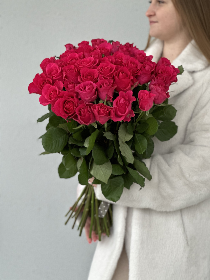 Каждая роза отобрана вручную, чтобы гарантировать высочайшее качество и свежесть. Букет аккуратно оформлен в стильной упаковке, подчеркивающей красоту цветов и добавляющей изысканности. Он станет прекрасным подарком для любимого человека, подчеркивая Вашу заботу и внимание.