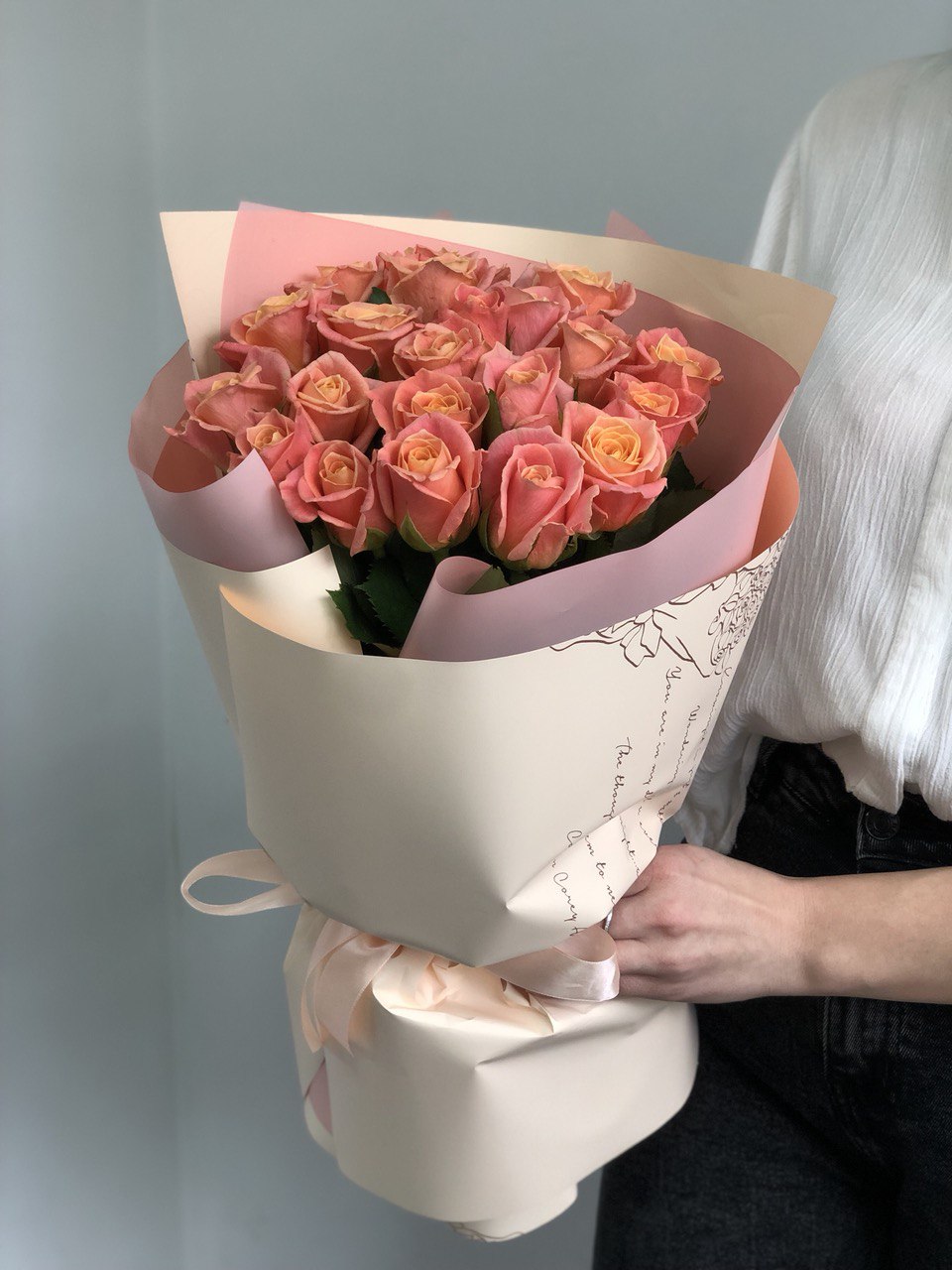 Букет из 25 роз сорта Лейла — это не просто цветы, это символ любви и восхищения, который оставит незабываемое впечатление.