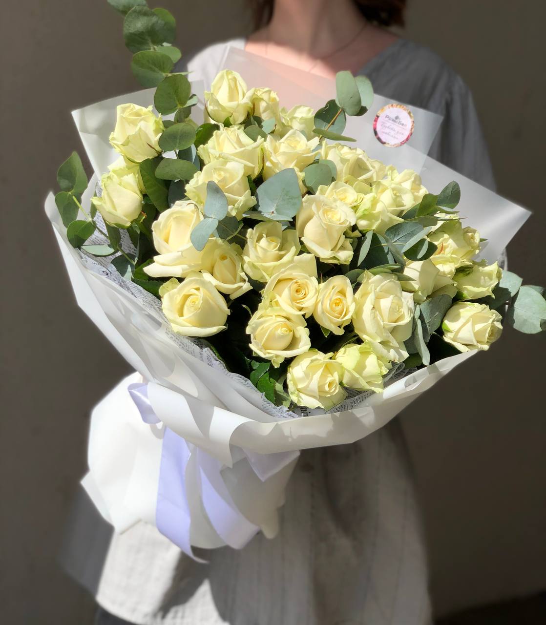 Дополненный зелеными листьями и стильной упаковкой, букет из 31 кустовой розы станет прекрасным подарком, который оставит незабываемое впечатление и подарит улыбку тому, кто его получит.
