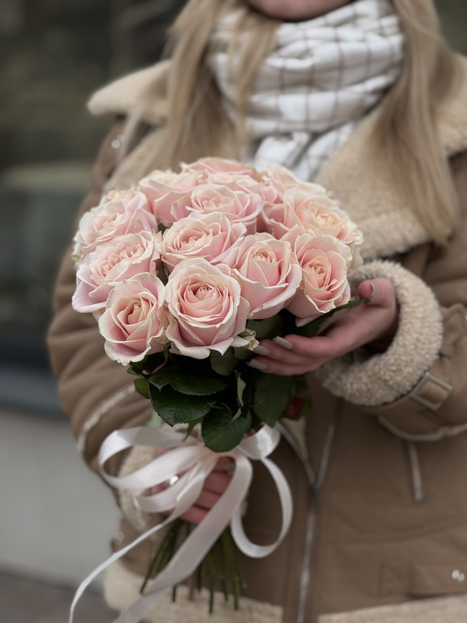 Букет "Марсель" из 15 роз сорта Аваланж Пич - прекрасный подарок девушке, жене, маме, бабушке, партнерам, молодоженам, дружественным компаниям. Его можно подарить как женщине, так и мужчине.