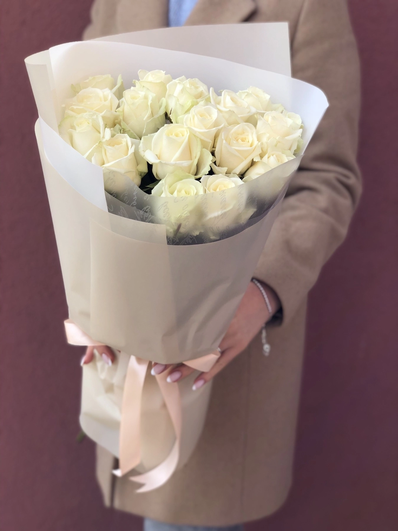 Превосходная форма бутона и длинные ножки цветов, нежный аромат делают букет «Очарование» идеальным подарком!