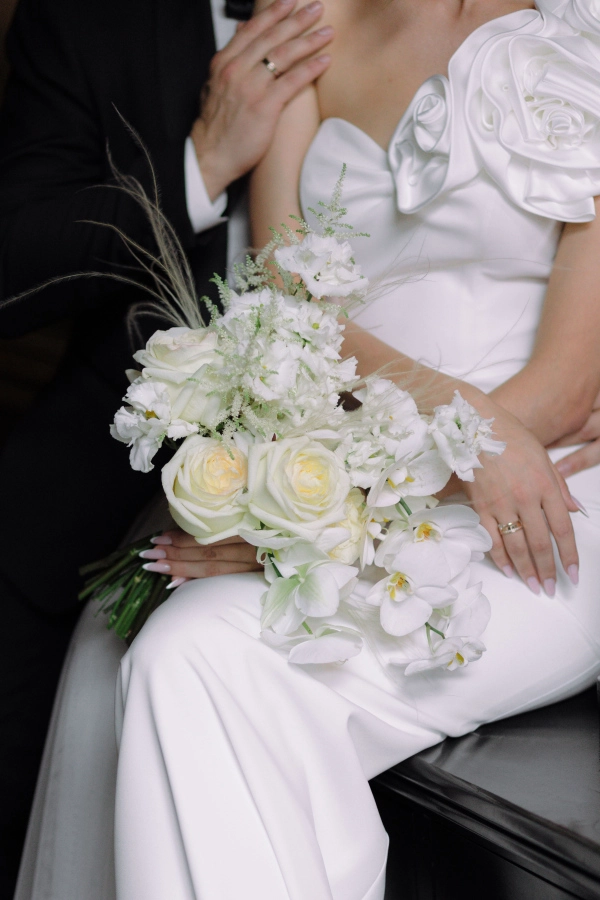 Понимая, что каждая невеста мечтает об уникальном букете, мы готовы адаптировать композицию под ваши пожелания и предпочтения. Сообщите нам, какие цветы или работы вам нравятся, и мы с радостью создадим для вас неповторимый свадебный букет, который станет настоящим украшением вашего торжества.