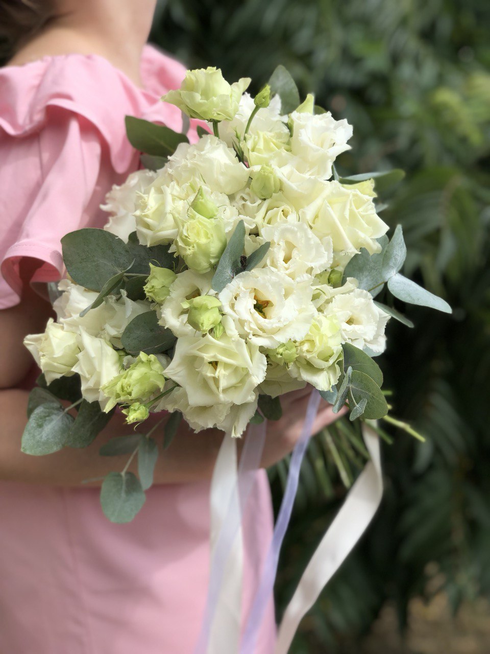 Этот свадебный букет — воплощение утончённой элегантности и романтики. В нем идеально сочетаются нежные розы, пышные пионы, изысканная эустома, воздушная астильба и великолепные пионовидные розы. Все вместе они создают утончённую и гармоничную композицию, которая будет лучшим дополнением вашего свадебного образа. Нежные пастельные оттенки цветов подчёркивают вашу изысканность и создают атмосферу легкости и свежести.